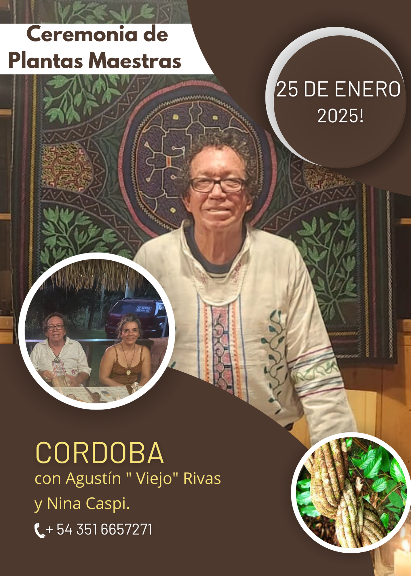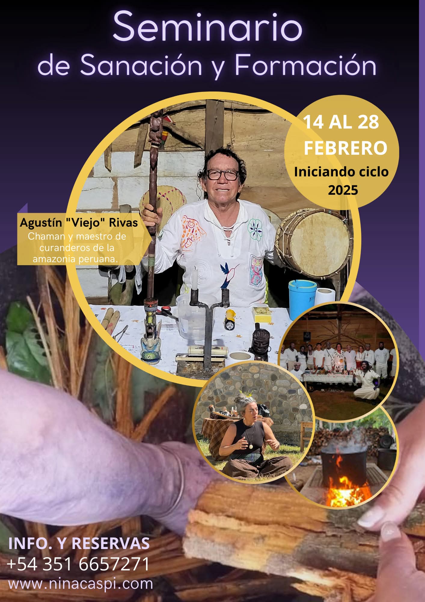 "Un nuevo año un nuevo comienzo, y una nueva energía para compartir este seminario de sanación y formación dirigido por Agustín " Viejo" Rivas. Quien es Chaman y Maestro de curanderos de la Amazonia Peruana. "Estos seminarios cuentan con una trayectoria de mas de 25 años al servicio del chamanismo amazónico. Al servicio de la curación y la sanación.